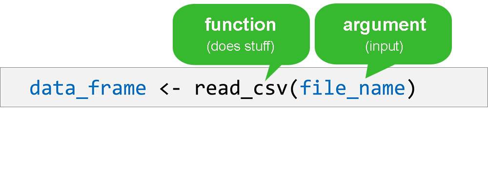 Functions do stuff. They accept Arguments as input and return an Output. Capture an output in an Object using the assignment operator ( <- ).