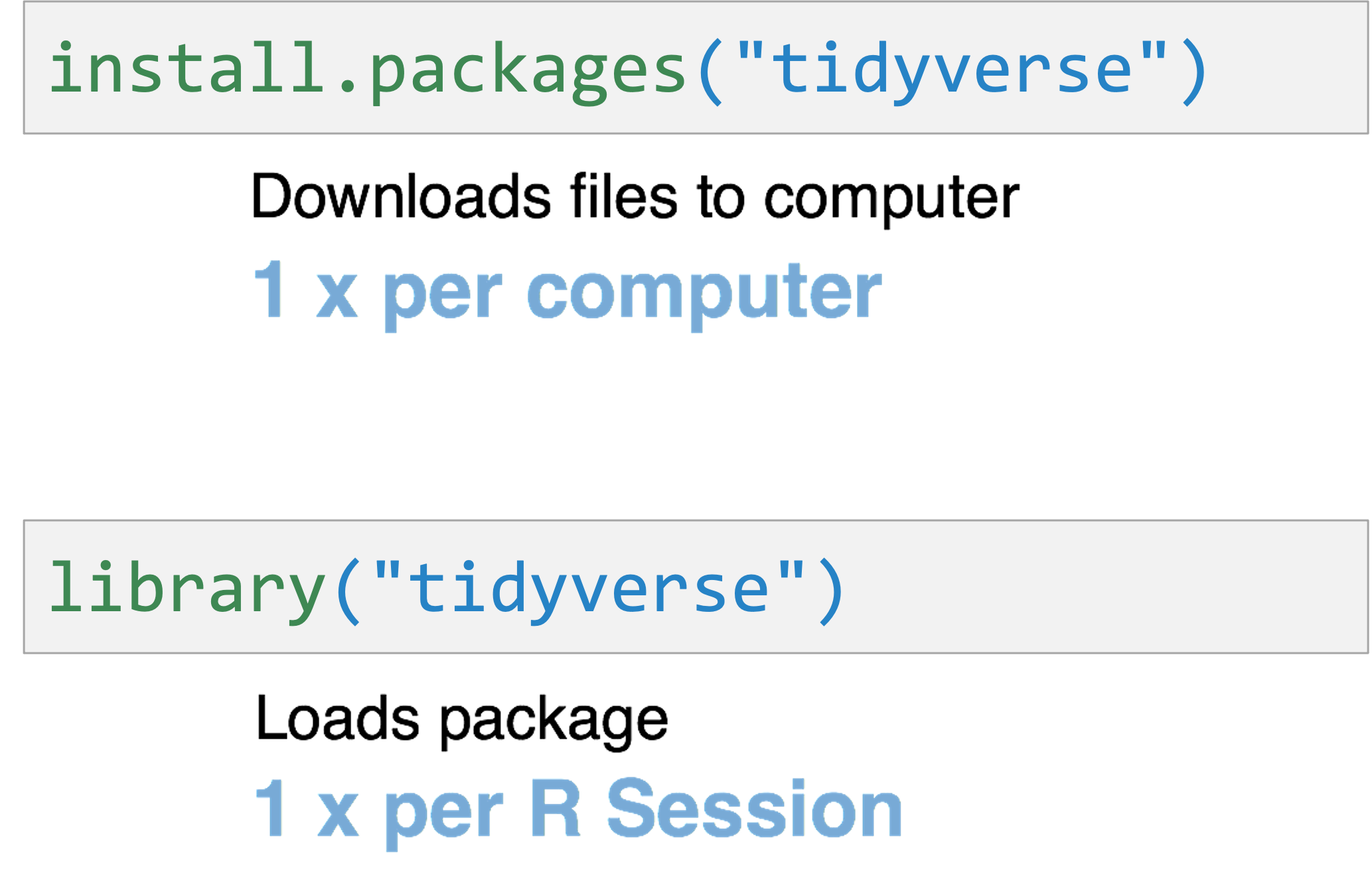 Packages extend the functionality of R. Install with install.packages() and load with library()