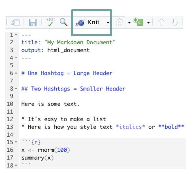 Knit the document with the “ball of yarn” button (