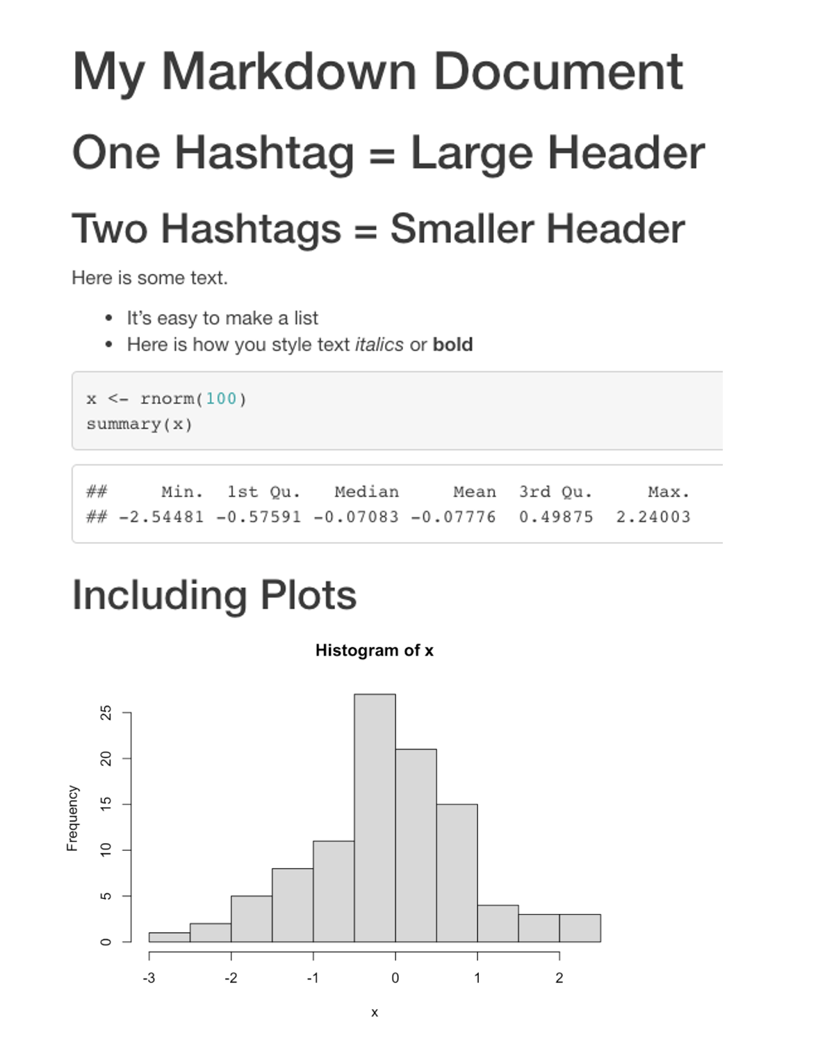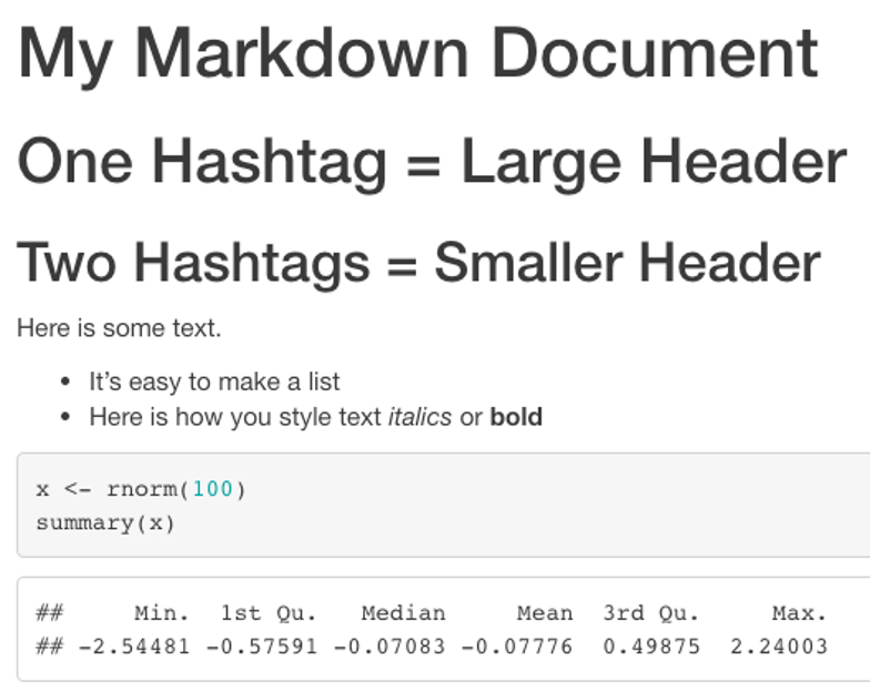 This will give you a handy template which is used to show you a working example of a simple R Markdown document. You will be asked to provide a title and author, and you can choose any values you like, such as “Test” or “My First Markdown”.