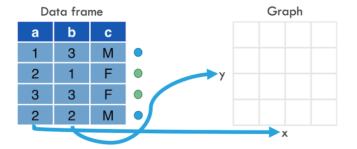 Aesthetic mappings, which tell R how to represent data as graphical markings on the plot.