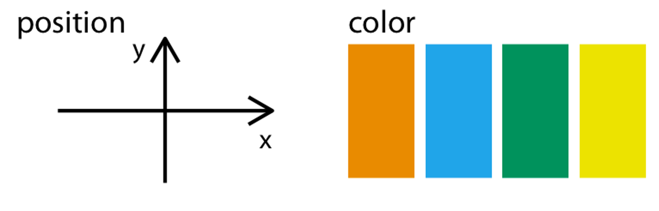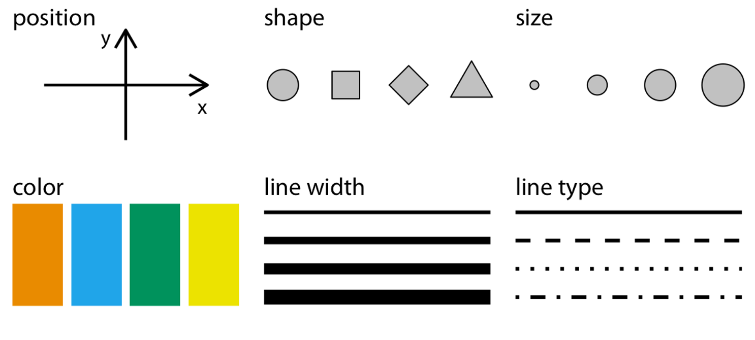 In addition to x/y position and color, what other aesthetic mappings can you think of?