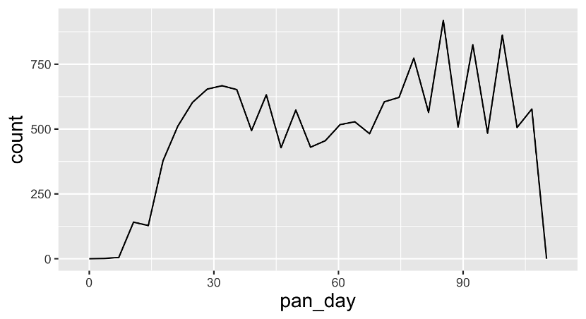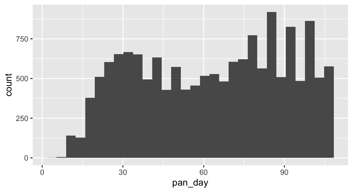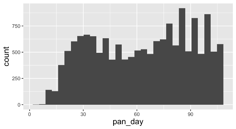 geom_histogram(mapping = aes(x = pan_day))