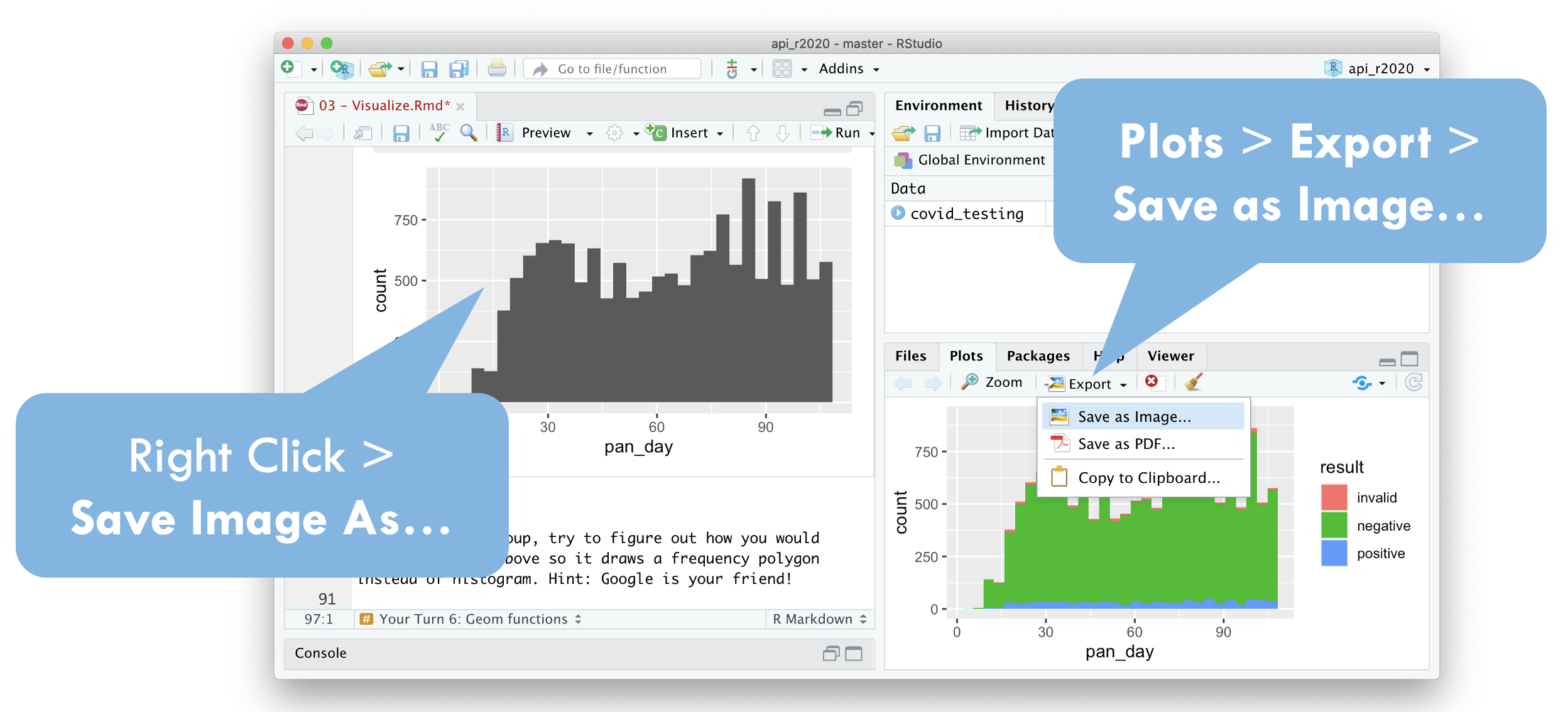 Type the following code in the RStudio console to make a graph.