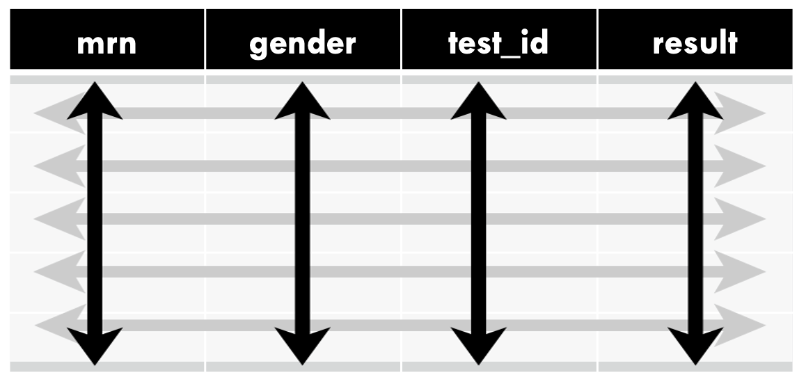 A tidy data frame, in which each variable is in its own column, each observation is in its own row, each value is in its own cell;