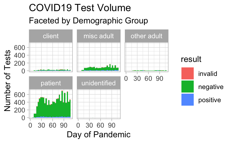 ggtitle(label = "COVID19 Test Volume",