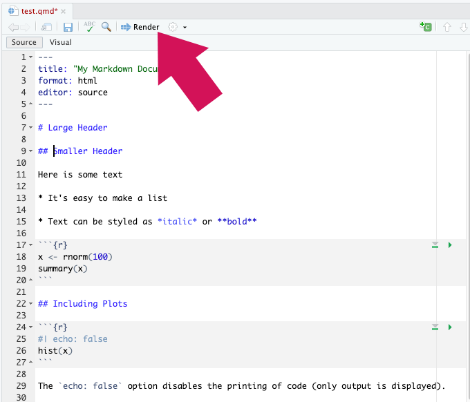 You will see (“Knit”/“Preview” instead of “Render” in R Markdown documents)