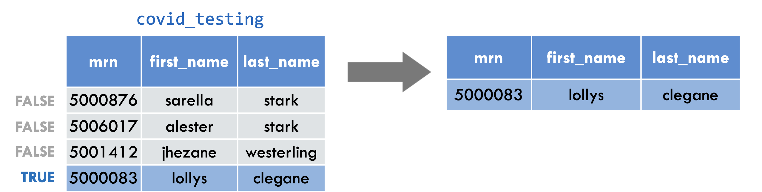 select(covid_testing, mrn, last_name)