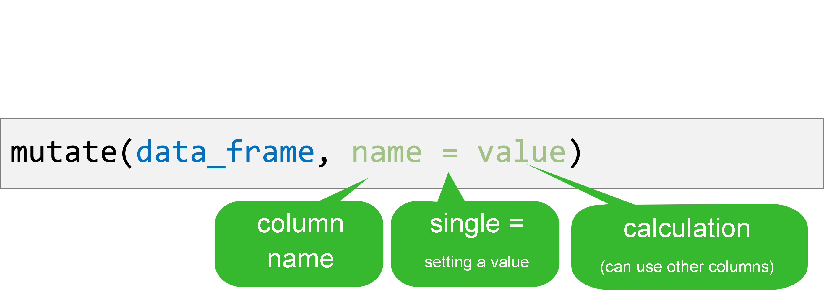 mutate() creates new calculated columns or changes existing columns