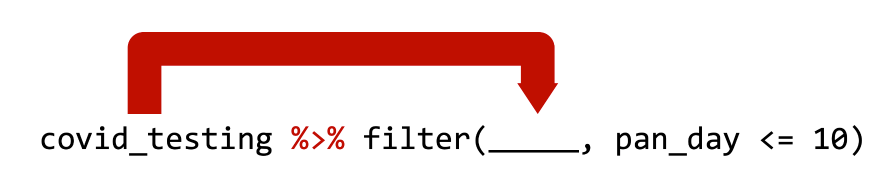 covid_testing %>% filter(pan_day <= 10) is equivalent to filter(covid_testing, pan_day <= 10)